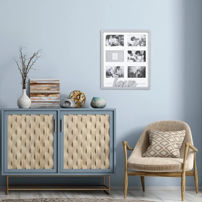 This live laugh love collage picture frame displays (6) 4-inch by 6-inch photos behind glass. The raised “loved” reminds everyone how important it is to love one another, and will make the best addition to any wall in your home. The neutral painted gray frame is perfect for any decor. Ready to hang using the attached sawtooth hanger.