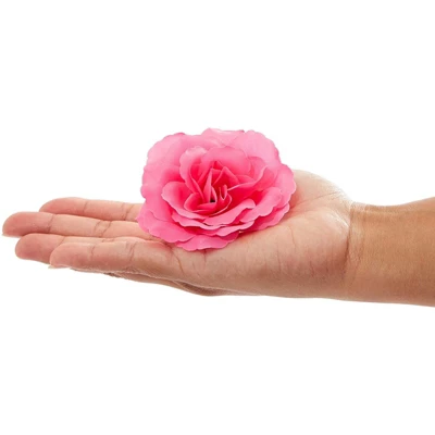 Add this set of 50 artificial rose flower heads to your party supplies to create colorful flower arrangements, centerpieces, flower crowns, or home decor. The bulk artificial flower heads each measure 3 inches, and can easily be applied with glue or safety pins. The silk construction ensures these faux pink roses can be reused for multiple upcoming celebrations.