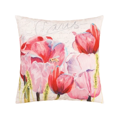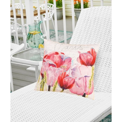 Take your indoor style outdoors with C&F Home’s indoor/outdoor pillows. Featuring a field of bright pink tulips and elegant script writing, reminiscent of spring in Paris. Created in collaboration with artist Jennifer Redstreake, this pillow will bring a pop of color and sunshine to any space. From crisp nights on the patio to sunny springtime bedrooms, the design possibilities are endless. Fade resistant, this pillow is crafted with a soft polyester cover and polyfill for plushness and quick drying. Spot cleaning recommended.