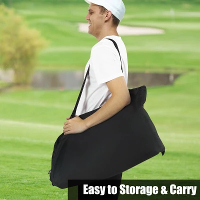 With this golf net, no more limitation for you to improve your golf skill and enjoy your favorite sport. our golf nets offer a player unparalleled performance, rugged durability and premium quality, are designed of both indoor and outdoor use. It’s easy to set up ready for hitting practice in minutes. Shock-corded fiberglass poles with protective sides to stop wide shots. Golf net storage bag and ground stakes included. Durable long life nylon mesh net with backdrop target. Free standing and easy to set up. It’s your take anywhere golf driving range in a bag, it’s light weight and small in size when closed.