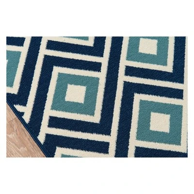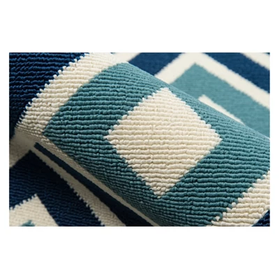 This elegant indoor/outdoor all-weather area rug offers everything you need to complete the ultimate outdoor room. Repeating stripes, diamonds, trellis and arabesque shapes meet nautical icons like ropes, anchors and waves, adding a luxe layer to all interior and exterior living spaces, including patios, porches and pool decks. Durable power-loomed construction ensures each decorative floorcovering transitions beautifully from season to season while the vibrant color palette and enduring polypropylene fibers offer endless design possibilities indoors and out.