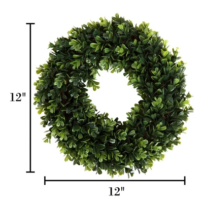 Decorate your front door, mantle, or kitchen with this Nature Spring Artificial Boxwood Wreath. Detailed with durable brown twigs and bright variegated leaves on the front and back, this faux boxwood offers realistic beauty without any upkeep. Built-in ultraviolet protection prevents fading so you can enjoy this elegant greenery indoors or out, any season of the year.