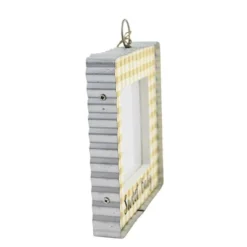 - This Wooden Painted Picture Holder Is Framed In Rippled Metal With The Picture Insertion On The Back.