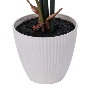 Vickerman 18″ Green Monstera Plant x7 in White Pot. This plant features seven leaves. It comes in a white plastic pot that measures 4.5″D x 4″H.