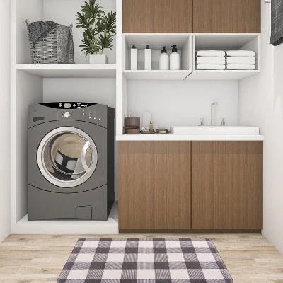 Bring this modern geometric plaid anti-fatigue Mat to any place in your home, from the entryway to the bathroom, on to the kitchen and laundry room. This Mat makes great use for high foot traffic areas without breaking a sweat. The Rubber backing enables it to stay in place keep durable for your usage.